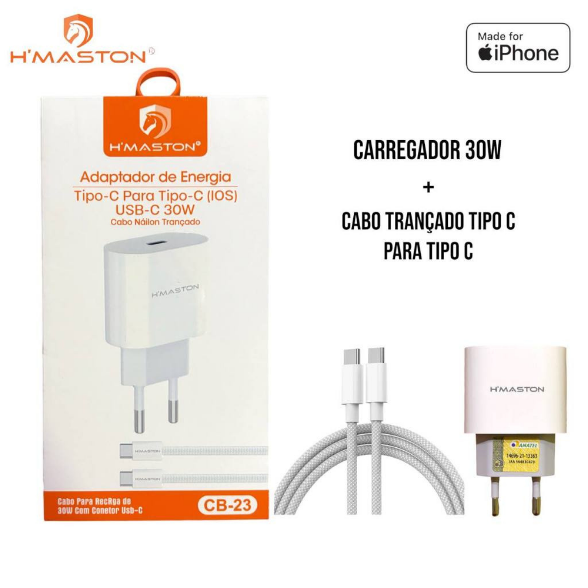 CARREGADOR 45W + CABO IPHONE/IPAD ou TIPO-C